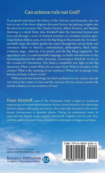 Can science rule out God? To properly understand the history of the universe and humanity, one can turn to any of the three religions discussed herein, but gaining insights into the theories of scientists like Charles Darwin, Albert Einstein, and Stephen Hawking is a much better idea. Komhoff takes the interested layman past God and through a series of eminent scientists on a timeless journey spanning fourteen billion years, from the Big Bang to the present day. In understandable steps, the author guides the reader through the various fields and introduces them to theories, contradictions, philosophers, black holes, evolution, logic, relativity, God proofs, and the Big Bang singularity. The appendices add, in understandable language, in-depth introductions to the fascinating theories the author discusses. According to Komhoff, we live in the Cosmos of Coincidence. This sheds a completely new light on the Big Questions: What is man? Where do we come from? What is our place in the cosmos? What is the meaning of our existence? Where are we going? And, last but not least, is there a God? With present-day knowledge, his final conclusion is: yes, science can rule out God as the creator of man and the universe, but no, science cannot rule out the existence or non-existence of God.