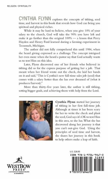 Cynthia Flynn explores the concepts of tithing, seed time, and harvest in this book that reveals how God can bring you spiritual and physical riches. While it may be hard to believe, when you give 10% of your salary to the church, God will take the 90% you have left and make it go further than the original 100% - a lesson that Perry Hayden and Henry Ford learned during a farming experiment in Tecumseh, Michigan. The author did not fully comprehend this until 1984, when she heard giving expressed as a challenge. The concept intrigued her even more when she heard a pastor say that God actually wants us to test Him on this idea. Later, Flynn discovered one of her friends who believed in tithing did so for the express purpose of getting her a job. That meant when her friend wrote out the check, she laid her hands on it and said, "This is Cynthia's new full-time sales job (seed) that comes with a salary better than she has ever dreamed of (what it produces/harvest)." More than thirty-five years later, the author is still tithing, setting bigger goals, and achieving them with help from the Lord.