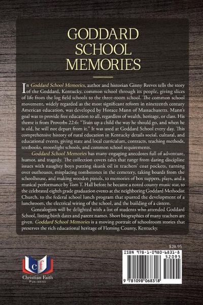 In Goddard School Memories, author and historian Ginny Reeves tells the story of the Goddard, Kentucky, common school through its people, giving slices of life from the log field schools to the three-room school. The common school movement, widely regarded as the most significant reform in nineteenth century American education, was developed by Horace Mann of Massachusetts. Mann's goal was to provide free education to all, regardless of wealth, heritage, or class. His theme is from Proverbs 22:6: Train up a child the way he should go, and when he is old, he will not depart from it. It was used at Goddard School every day. This comprehensive history of rural education in Kentucky details social, cultural, and educational events, giving state and local curriculum, contracts, teaching methods, textbooks, moonlight schools, and common school requirements. Goddard School Memories has many engaging anecdotes full of adventure, humor, and tragedy. The collection covers tales that range from daring discipline issues with naughty boys putting skunk oil in teachers coat pockets, turning over outhouses, misplacing tombstones in the cemetery, taking boards from the schoolhouse, and making wooden pistols, to memories of box suppers, plays, and a musical performance by Tom T. Hall before he became a noted county music star, to the celebrated eighth grade graduation events at the neighboring Goddard Methodist Church, to the federal school lunch program that spurred the development of a lunchroom, the electrical wiring of the school, and the building of a cistern Genealogists will be delighted with a list of students who attended Goddard School, listing birth dates and parent names. Short biographies of many teachers are given. Goddard School Memories is a moving portrait of schoolroom stories that preserves the rich educational heritage of Fleming County, Kentucky. 238