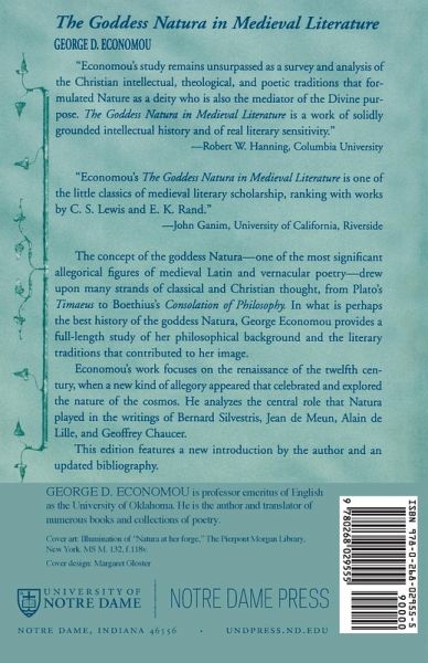The concept of the goddess Natura-one of the most significant allegorical figures of medieval Latin and vernacular poetry-drew upon many strands of classical and Christian thought, from Plato's Timaeus to Boethius's Consolation of Philosophy. In what is perhaps the best history of the goddess Natura, George Economou provides a full-length study of her philosophical background and the literary traditions that contributed to her image. Economou's work focuses on the renaissance of the twelfth century, when a new kind of allegory appeared that celebrated and explored the nature of the cosmos. He analyzes the central role that Natura played in the writings of Bernard Silvestris, Jean de Meun, Alain de Lille, and Geoffrey Chaucer. This edition features a new introduction by the author and an updated bibliography.