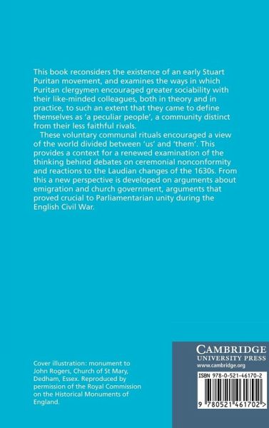 This book reconsiders the existence of an early Stuart Puritan movement, and examines the ways in which Puritan clergymen encouraged greater sociability with their like-minded colleagues, both in theory and in practice, to such an extent that they came to define themselves as 'a peculiar people', a community distinct from their less faithful rivals. Their voluntary communal rituals encouraged a view of the world divided between 'us' and 'them'. This provides a context for a renewed examination of the thinking behind debates on ceremonial nonconformity and reactions to the Laudian changes of the 1630s. From this a new perspective is developed on arguments about emigration and church government, arguments that proved crucial to Parliamentarian unity during the English Civil War.