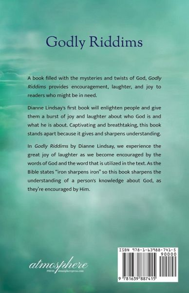 A book filled with the mysteries and twists of God, Godly Riddims provides encouragement, laughter, and joy to readers who might be in need. Dianne Lindsay's first book will enlighten people and give them a burst of joy and laughter about who God is and what he is about. Captivating and breathtaking, this book stands apart because it gives and sharpens understanding. In Godly Riddims by Dianne Lindsay, we experience the great joy of laughter as we become encouraged by the words of God and the word that is utilized in the text. As the Bible states "iron sharpens iron" so this book sharpens the understanding of a person's knowledge about God, as they're encouraged by him.