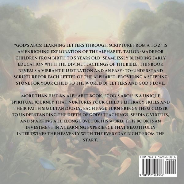 God's ABCs: Learning Letters Through Scripture from A to Z" is an inspiring journey through the alphabet designed specifically for our littlest believers. Made for ages birth through 5 years old, this delightful book harmoniously combines early learning with the profound truths of the Bible. Every page turn reveals a vibrant illustration, meticulously crafted to hold your child's attention while aiding in their crucial early development. Each letter of the alphabet is paired with an easy-to-understand scripture, making the learning of ABCs an enriching spiritual experience. From 'A' for Angel with Psalm 91:11 "For He will command His angels concerning you to guard you in all your ways," to 'Z' for Zeal with Romans 12:11 "Never be lacking in zeal, but keep your spiritual fervor, serving the Lord," each letter becomes a stepping stone to introduce God's word to your child. Reading this book together will not only provide a solid foundation for your child's literacy skills but also instill in them the beautiful messages and teachings of the Bible. As their comprehension of letters and words grow, so too will their understanding of God's love and teachings. "God's ABCs: Learning Letters Through Scripture from A to Z" is more than just an alphabet book; it's an opportunity to nurture your child's faith as they explore the world of letters. By the time they reach 'Z,' your little ones will have embarked on a spiritual journey, building a strong connection between the heavenly and the everyday, right from the very start of their learning journey. Invest in a book that gives more than just the ABCs, a book that seeds faith, virtue, and a lifelong love for God's word. Make learning a delightful, divine experience with "God's ABCs: Learning Letters Through Scripture from A to Z."