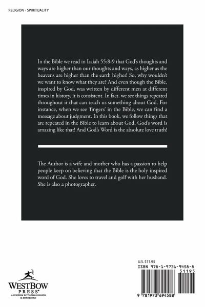 In the Bible we read in Isaiah 55:8-9 that God's thoughts and ways are higher than our thoughts and ways, as higher as the heavens are higher than the earth higher! So, why wouldn't we want to know what they are? And even though the Bible, inspired by God, was written by different men at different times in history, it is consistent. In fact, we see things repeated throughout it that can teach us something about God. For instance, when we see 'fingers' in the Bible, we can find a message about judgment. In this book, we follow things that are repeated in the Bible to learn about God. God's word is amazing like that! And God's Word is the absolute love truth!