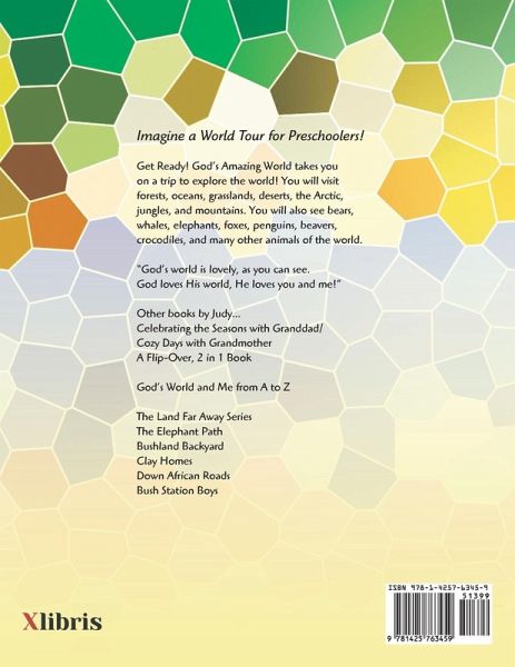 Author Judy Langley introduces preschoolers to the ecology of a variety of geographical regions around the world in her latest book, God's Amazing World. From the grasslands of Africa, to the American desert, to the depths of the sea, children travel the world to learn about the beauty and the animals of God's Amazing World. Kids will enjoy the multi-sensory combo of rhythmic verses and quilted illustrations. The landscapes and animals were designed and created completely of fabric by Judy and her daughter-in-law, Kimberly. Audrey Burchyett, Judy's world traveling friend, added the detailed stitchery including the eyes of the animals and the faces of the children.