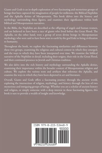 Giants and Gods is an in-depth exploration of two fascinating and mysterious groups of beings that have captured the imagination of people for millennia: the Biblical Nephilim and the Apkallu deities of Mesopotamia. This book delves into the history and mythology surrounding these figures, and examines their significance within both biblical and Mesopotamian narratives. In the Bible, the Nephilim are described as the offspring of angels and human women, and are believed to have been a race of giants who lived before the Great Flood. The Apkallu, on the other hand, were a group of seven divine beings in Mesopotamian mythology who were said to have been sent to earth by the god Enki to bring civilization to humanity. Throughout the book, we explore the fascinating similarities and differences between these two groups, examining the religious and cultural context in which they emerged, and the ways in which they have been interpreted over time. We examine the biblical narrative of the Nephilim in detail, including their origins, their role in the Great Flood, and their continued presence in Jewish and Christian tradition. We also delve into the rich history and mythology surrounding the Apkallu deities, examining their importance within the broader context of Mesopotamian religion and culture. We explore the various texts and artifacts that reference the Apkallu, and examine the ways in which they have been depicted in art and literature. Overall, Giants and Gods offers a fascinating journey through the ancient world, exploring the intersection of religion, mythology, and history through the lens of two mysterious and intriguing groups of beings. Whether you are a scholar of ancient history and religion, or simply someone with a deep interest in these fascinating figures, this book is sure to provide a wealth of insight and knowledge.