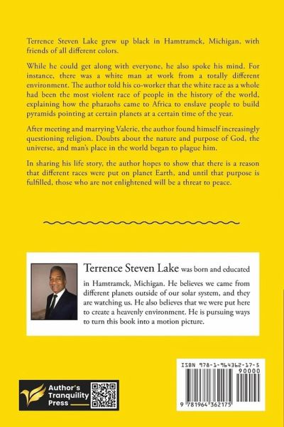 Terrence Steven Lake grew up as a black individual in Hamtramck, Michigan, surrounded by friends of diverse backgrounds. While he was able to build rapport with people from all walks of life, he was also known for speaking his mind openly. For instance, he once engaged in a conversation with a white colleague from a markedly different background, expressing his viewpoint that the white race, historically, had been the most violent group of people. He illustrated his argument by citing examples such as the enslavement of Africans by the pharaohs to construct pyramids aligned with specific celestial bodies. Upon meeting and marrying Valerie, Terrence found himself increasingly grappling with doubts surrounding religion. Questions about the nature of God, the universe, and humanity's place in the grand scheme of things began to trouble him. Through the sharing of his life story, Terrence hopes to convey the idea that each race has a unique purpose on Earth, and until this purpose is realized, those lacking enlightenment may pose a threat to peace.