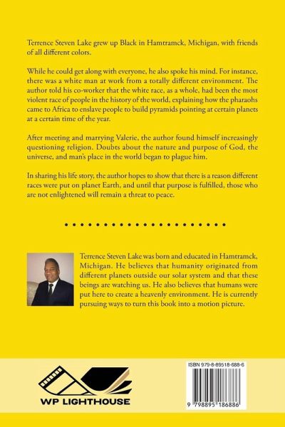 Terrence Steven Lake grew up Black in Hamtramck, Michigan, with friends of all different colors. While he could get along with everyone, he also spoke his mind. For instance, there was a white man at work from a totally different environment. The author told his co-worker that the white race, as a whole, had been the most violent race of people in the history of the world, explaining how the pharaohs came to Africa to enslave people to build pyramids pointing at certain planets at a certain time of the year. After meeting and marrying Valerie, the author found himself increasingly questioning religion. Doubts about the nature and purpose of God, the universe, and man's place in the world began to plague him. In sharing his life story, the author hopes to show that there is a reason different races were put on planet Earth, and until that purpose is fulfilled, those who are not enlightened will remain a threat to peace.