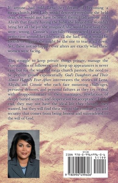 If anyone had told Lena her dream of becoming a mega-church First Lady would destroy everything she held dear, she would not have believed them. Had anyone told Aliyah that finally having the baby she longed for wouldn't bring her all the joy she imagined, she would have said they were wrong. Connie's carefully constructed facade of perfection around her life was all she had, and it would be foolish to suggest she might be the one to tear it all down. Yet, these not-so-happily ever afters are exactly what these women were facing. The struggle to keep private things private, manage the expectations of followers, and keep up appearances is never easy, but for the wives of mega-church pastors, the need to be perfect grows exponentially. God's Daughters and Their Almost Happily Ever Afters interweaves the stories of Lena, Aliyah, and Connie who each face mounting challenges, pervasive demons, and personal failures as they try to deal with disappointments in their marriages, revelations of deeply buried secrets, and desperation for acceptance. In the end, they may not have the ideal life they thought they wanted, but they will find their way to the comfort, joy, and security that comes from being honest and surrendered to the will of God.