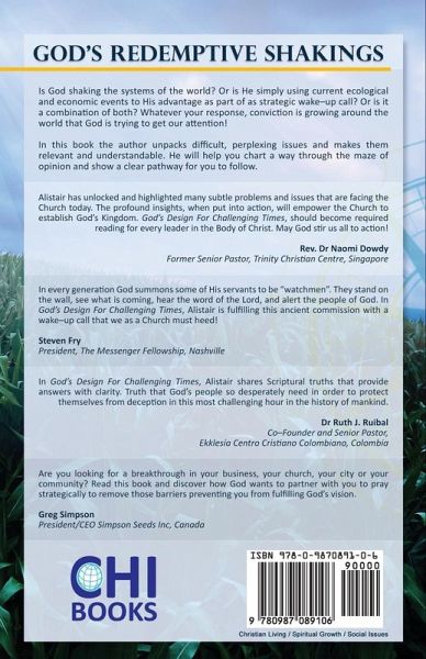 Is God shaking the systems of the world? Or is He simply using current ecological and economic events to His advantage as part of as strategic wake-up call? Or is it a combination of both? Whatever your response, conviction is growing around the world that God is trying to get our attention! In this book the author unpacks difficult, perplexing issues and makes them relevant and understandable. He will help you chart a way through the maze of opinion and show a clear pathway for you to follow.