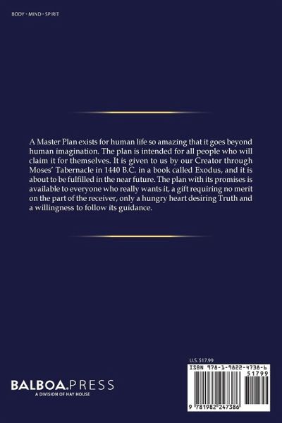 A Master Plan exists for human life so amazing that it goes beyond human imagination. The plan is intended for all people who will claim it for themselves. It is given to us by our Creator through Moses' Tabernacle in 1440 B.C. in a book called Exodus, and it is about to be fulfilled in the near future. The plan with its promises is available to everyone who really wants it, a gift requiring no merit on the part of the receiver, only a hungry heart desiring Truth and a willingness to follow its guidance.