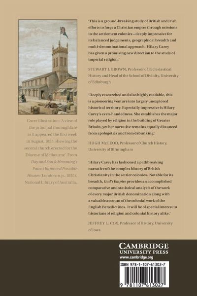 In God's Empire, Hilary M. Carey charts Britain's nineteenth-century transformation from Protestant nation to free Christian empire through the history of the colonial missionary movement. This wide-ranging reassessment of the religious character of the second British empire provides a clear account of the promotional strategies of the major churches and church parties which worked to plant settler Christianity in British domains. Based on extensive use of original archival and rare published sources, the author explores major debates such as the relationship between religion and colonization, church-state relations, Irish Catholics in the empire, the impact of the Scottish Disruption on colonial Presbyterianism, competition between Evangelicals and other Anglicans in the colonies, and between British and American strands of Methodism in British North America.