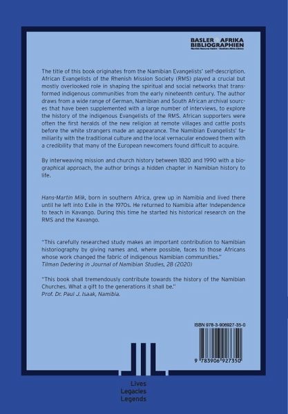 The title of this book originates from the self-description of Namibian Evangelists in their own words. African evangelists of the Rhenish Mission Society (RMS) played a crucial but mostly overlooked role in shaping the spiritual and social networks that transformed indigenous communities from the early nineteenth century. The author draws from a wide range of German, Namibian and South African archival sources that have been supplemented with a large number of interviews, to explore the history of the indigenous evangelists of the RMS. African supporters were often the first heralds of the new religion at remote villages and cattle posts before the white strangers made an appearance. The Namibian evangelists' familiarity with the traditional culture and the local vernacular endowed them with a credibility that many of the European newcomers found difficult to acquire. By interweaving mission and church history between 1820 and 1990 with a biographical approach, the author brings a hidden chapter in Namibian history to life. Hans-Martin Milk, born in southern Africa, grew up in Namibia and lived there until he left into Exile in the 1970s. He returned to Namibia after independence to teach in Kavango. During this time he started his historical research on the RMS and the Kavango.