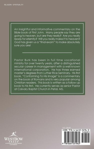 An insightful and informative commentary on the Bible book of First John. Many people say they are going to heaven, but are they really? Are you really ready for eternity? Will you really make it to heaven? God has given us a "final exam" to make absolutely sure you are!
