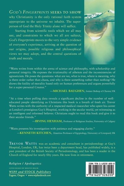 God's Fingerprints seeks to show why Christianity is the only rational faith system appropriate to the universe we inhabit. The super-person of God the Holy Trinity alone will suffice. Starting from scientific tools that we all may use, and constraints to which we all are subject, God's Fingerprints moves to the very simple evidence of everyone's experience, arriving at the question of our origins, possible religious and philosophical views we may adopt, and the central questions of truth and morals.