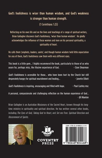 God's Foolishness is wiser than human wisdom, and God's weakness is stronger than human strength. (1 Corinthians 1:25).Reflecting on his own life and on the lives and teachings of a range of spiritual writers, Brian Gallagher discovers God's foolishness, 'wiser than human wisdom'. He gladly acknowledges the influence of these women and men on his personal spirituality, a spiritual heart.He calls them 'prophets, leaders, saints', and though human wisdom held little expectation for any of them, God's foolishness saw them with very different eyes.