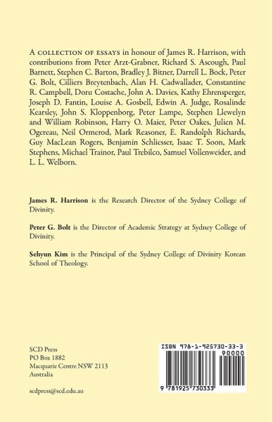 A collection of essays in honour of James R. Harrison, with contributions from Peter Arzt-Grabner, Richard S. Ascough, Paul Barnett, Stephen C. Barton, Bradley J. Bitner, Darrell L. Bock, Peter G. Bolt, Cilliers Breytenbach, Alan H. Cadwallader, Constantine R. Campbell, Doru Costache, John A. Davies, Kathy Ehrensperger, Joseph D. Fantin, Louise A. Gosbell, Edwin A. Judge, Rosalinde Kearsley, John S. Kloppenborg, Peter Lampe, Stephen Llewelyn and William Robinson, Harry O. Maier, Peter Oakes, Julien M. Ogereau, Neil Ormerod, Mark Reasoner, E. Randolph Richards, Guy MacLean Rogers, Benjamin Schliesser, Isaac T. Soon, Mark Stephens, Michael Trainor, Paul Trebilco, Samuel Vollenweider, and L. L. Welborn.