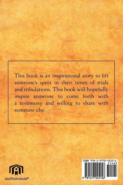 This book is an inspirational story to lift someone's spirit in their times of trials and tribulations. This book will hopefully inspire someone to come forth with a testimony and willing to share with someone else.