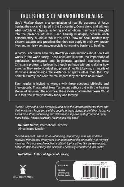 God's Healing Grace is a compilation of real-life accounts of Jesus healing the sick and injured in the 21st century. Come along and witness what unfolds as physical suffering and emotional trauma are brought into the presence of Jesus. Each healing is unique, because each person's story is unique. While this isn't a "how to" book, readers may discern patterns and practices that they can apply to their own prayer lives and ministry settings, especially around barriers to healing. What you encounter here may stretch your assumptions about how God works in the world today. These accounts illustrate the importance of confession, repentance and forgiveness - spiritual practices most Christians profess to believe in, though perhaps without realizing how essential they are for spiritual and physical health. Likewise, a majority of Christians acknowledge the existence of spirits other than the Holy Spirit, but rarely consider the real impact they can have on our lives. Each reader is invited to wrestle with these accounts biblically and theologically. That's what New Testament authors did with the healing stories of Jesus and the apostles. These stories confirm that Jesus Christ is in fact "the same yesterday, today and forever."