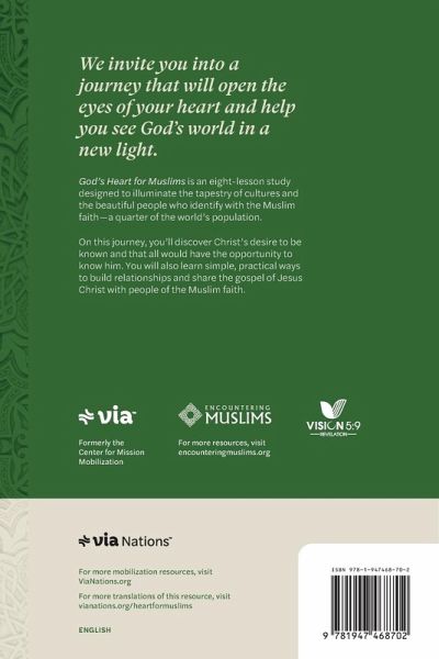 Embracing Muslims with the Love of Christ We invite you into a journey that will open the eyes of your heart and help you see God's world in a new light. This 8-lesson study is designed to illuminate the tapestry of cultures and the beautiful people who identify with the Muslim faith-a quarter of the world's population. God's Heart for Muslims will help you:Learn shared beliefs among Christians and Muslims - and their differences Think of new ways to connect and share life with your Muslim neighbors See God's heart and plan to redeem all people Paperback 6.125" x 9.25" in size. 0.52 lb ¿ 128 pages