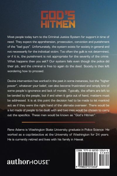 Most people today turn to the Criminal Justice System for support in time of need. They expect the apprehension, prosecution, conviction and punishment of the "bad guys". Unfortunately, the system exists for society in general and not necessarily for the individual victim. Too often the guilt is not determined, or if it is, the punishment is not appropriate for the severity of the crime. What happens then you ask? Our system fails even though the police did their job, and the criminal is free to again do the deed. Society is then left wondering how to proceed. Devine intervention has worked in the past in some instances, but the "higher power", whatever your belief, can also become frustrated and simply tire of some people's ignorance and lack of morals. Typically, the affairs are left to be tended by the people, but if and when it gets out of hand, matters must be addressed. It is at this point the decision had to be made to let mankind act as if they were the right hand of the ultimate overseer. There would be a list made of people to be dealt with and two men would be chosen to carry out the specifics. These men would be known as "God's Hitmen".
