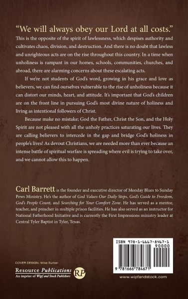 ""We will always obey our Lord at all costs."" This is the opposite of the spirit of lawlessness, which despises authority and cultivates chaos, division, and destruction. And there is no doubt that lawless and unrighteous acts are on the rise throughout this country. In a time when unholiness is rampant in our homes, schools, communities, churches, and abroad, there are alarming concerns about these escalating acts. If we're not students of God's word, growing in his grace and love as believers, we can find ourselves vulnerable to the rise of unholiness because it can distort our minds, heart, and attitude. It's important that God's children are on the front line in pursuing God's most divine nature of holiness and living as intentional followers of Christ. Because make no mistake: God the Father, Christ the Son, and the Holy Spirit are not pleased with all the unholy practices saturating our lives. They are calling believers to intercede in the gap and bridge God's holiness in people's lives! As devout Christians, we are needed more than ever because an intense battle of spiritual warfare is spreading where evil is trying to take over, and we cannot allow this to happen.