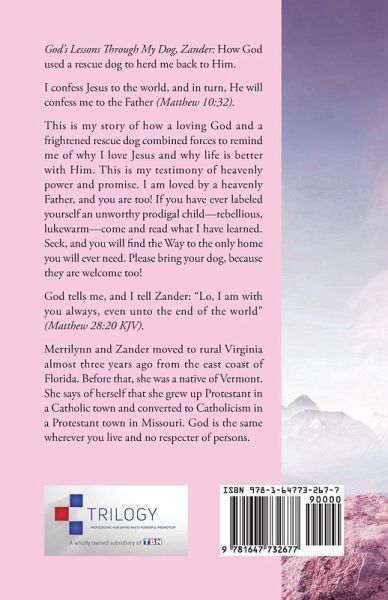 God's Lessons Through My Dog, Zander: How God used a rescue dog to herd me back to Him. I confess Jesus to the world, and in turn, He will confess me to the Father (Matthew 10:32). This is my story of how a loving God and a frightened rescue dog combined forces to remind me of why I love Jesus and why life is better with Him. This is my testimony of heavenly power and promise. I am loved by a heavenly Father, and you are too! If you have ever labeled yourself an unworthy prodigal child-rebellious, lukewarm-come and read what I have learned. Seek, and you will find the Way to the only home you will ever need. Please bring your dog, because they are welcome too! God tells me, and I tell Zander: "Lo, I am with you always, even unto the end of the world" (Matthew 28:20 KJV). Merrilynn and Zander moved to rural Virginia almost three years ago from the east coast of Florida. Before that, she was a native of Vermont. She says of herself that she grew up Protestant in a Catholic town and converted to Catholicism in a Protestant town in Missouri. God is the same wherever you live and no respecter of persons.