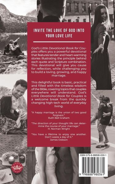 God's Little Devotional Book for Couples offers you a powerful devotional that features tender and heart-warming stories illustrating the principle behind each quote and scripture combination. This devotional will give you cause for reflection, while challenging you to build a loving, growing, and happy marriage.