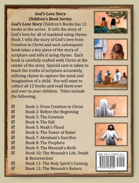 God's Love Story Children's Book series is a series of 12 children's books written to help toddlers and young children develop a intellectual framework for Biblical knowledge. 12 foundational stories from the Bible have been carefully selected in order to give a child a framework on which to hang their understanding of the scriptures.
