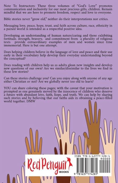 Welcome to "God's Love." This book has been a labor of love between a mother-a retired public school educator and principal-and daughter-also an educator. Both women taught curricula from various Catholic education institutions from kindergarten through eighth grade. Their collaboration provides an outline for teaching young children about Bible stories. The enjoyment, ease, and excitement of learning about God doesn't require special certification-just a love of reading and learning. Easily reproducible drawings provide symbolic representations of the biblical highlights. These simple drawings enhance a child's recall. Visual associations provide an easy reference for children's retention of the stories and self-recitation. Simplified information regarding daily biblical life, foods, toys, and responsibilities/chores is also included. The book is Intentionally succinct, easy to follow, with limited page size for easy transport, child friendly size and type. References to culture, languages and musical instruments are included to inspire further study and interest at the time of Jesus' life on earth. These simple reproducible drawings work well with religious instruction students. They can recall whole bible stories from just a glimpse of the symbol/picture associated with them. We hope that "God's Love" inspires both children and teachers to learn together about God and our relationship with God's world and with one another.