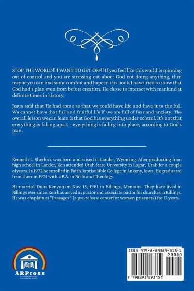 STOP THE WORLD!! I WANT TO GET OFF!! If you feel like this world is spinning out of control and you are stressing out about God not doing anything, then maybe you can find some comfort and hope in this book. I have tried to show that God had a plan even from before creation. He chose to interact with mankind at definite times in history, Jesus said that He had come so that we could have life and have it to the full. We cannot have that full and fruitful life if we are full of fear and anxiety. The overall lesson we can learn is that God has everything under control. It's not that everything is falling apart - everything is falling into place, according to God's plan.