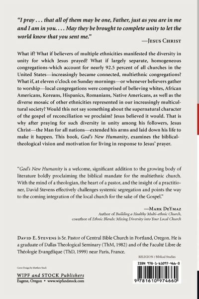 ""I pray . . . that all of them may be one, Father, just as you are in me and I am in you. . . . May they be brought to complete unity to let the world know that you sent me."" --Jesus Christ What if? What if believers of multiple ethnicities manifested the diversity in unity for which Jesus prayed? What if largely separate, homogeneous congregations--which account for nearly 92.5 percent of all churches in the United States--increasingly became connected, multiethnic congregations? What if, at eleven o'clock on Sunday mornings--or whenever believers gather to worship--local congregations were comprised of believing whites, African Americans, Koreans, Hispanics, Romanians, Native Americans, as well as the diverse mosaic of other ethnicities represented in our increasingly multicultural society? Would this not say something about the supernatural character of the gospel of reconciliation we proclaim? Jesus believed it would. That is why after praying for such diversity in unity among his followers, Jesus Christ--the Man for all nations--extended his arms and laid down his life to make it happen. This book, God's New Humanity, examines the biblical-theological vision and motivation for living in response to Jesus' prayer.