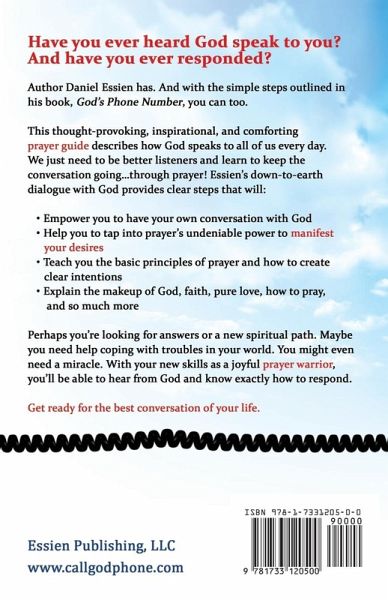 Have you ever heard God speak to you? Have you ever responded? Author Daniel Essien has-and with the simple process outlined in his book, God's Phone Number, you can too. This thought-provoking, inspirational, and comforting prayer guide describes how God speaks to us every day through more than the scripture of the Bible. We just need to be better listeners, study His word, and learn to keep the conversation going...through prayer! Essien's down-to-earth dialogue with God provides clear steps that will:Empower you to plan your own daily prayer conversation with God. Help you to tap into prayer's undeniable power to manifest your desires. Teach you the basic theology and principles of devotional prayer along with how to create clear intentions with faith. Explain who God is, how to pray to God, how to find pure love, and so much more... Perhaps, you're looking for answers, encouraging scriptures, or a healing spiritual path. Maybe you need hope to help cope with troubles in your world. You might even need a miracle. With your new skills as a joyful prayer warrior, you'll be able to create a direct line to hear the word of God and know exactly how to respond. Get ready for the best conversation of your life.