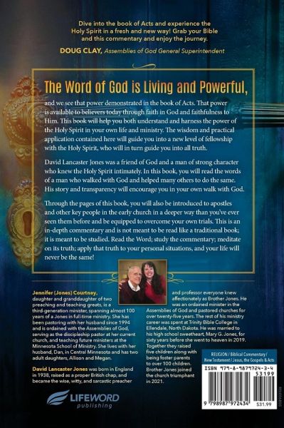 The Word of God is living and powerful, and we see that power demonstrated in the book of Acts. That power is available to believers today through faith in God and faithfulness to Him. This book will help you both understand and harness the power of the Holy Spirit in your own life and ministry. The wisdom and practical application contained here will guide you into a new level of fellowship with the Holy Spirit, who will in turn guide you into all truth. David Lancaster Jones was a friend of God and a man of strong character who knew the Holy Spirit intimately. In this book, you will read the words of a man who walked with God and helped many others to do the same. His story and transparency will encourage you in your own walk with God. Through the pages of this book, you will also be introduced to apostles and other key people in the early church in a deeper way than you've ever seen them before and be equipped to overcome your own trials. This is an in-depth commentary and is not meant to be read like a traditional book; it is meant to be studied. Read the Word; study the commentary; meditate on its truth; apply that truth to your personal situations, and your life will never be the same!