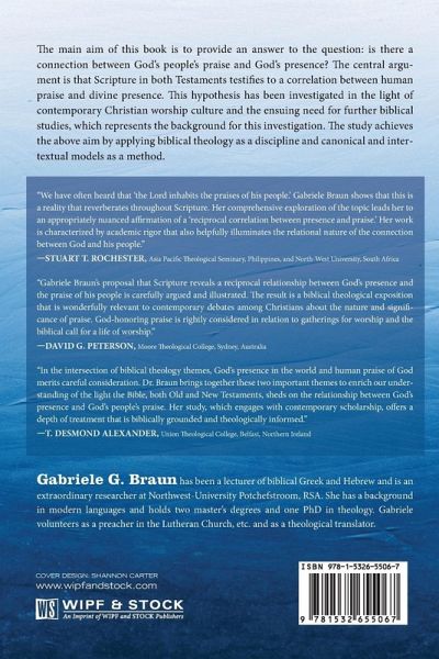 The main aim of this book is to provide an answer to the question: is there a connection between God's people's praise and God's presence? The central argument is that Scripture in both Testaments testifies to a correlation between human praise and divine presence. This hypothesis has been investigated in the light of contemporary Christian worship culture and the ensuing need for further biblical studies, which represents the background for this investigation. The study achieves the above aim by applying biblical theology as a discipline and canonical and intertextual models as a method.