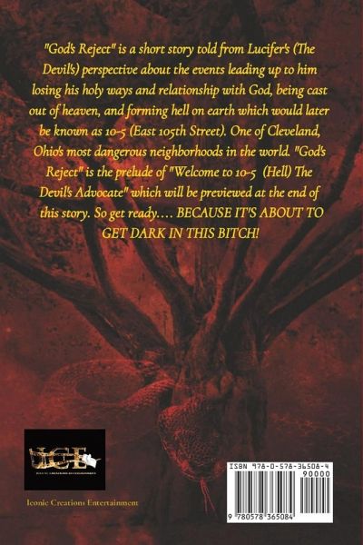 "God's Reject" is a short story told from Lucifer's (The Devil's) perspective about the events leading up to him losing his holy ways and relationship with God, being cast out of heaven, and forming hell on earth which would later be known as 10-5 (East 105th Street). One of Cleveland, Ohio's most dangerous neighborhoods in the world. "God's Reject" is the prelude of "Welcome to 10-5 (Hell) The Devil's Advocate" which will be previewed at the end of this story. So get ready.... BECAUSE IT'S ABOUT TO GET DARK IN THIS BITCH!