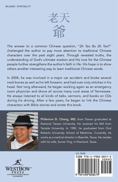 The answer to a common Chinese question, "Zh Tao Bu Zh Tao?" challenged the author to pay more attention to traditional Chinese characters over the past eight years. Through revealed truths, the understanding of God's ultimate wisdom and His love for the Chinese people further strengthens the author's faith in life. His hope is to show others another interesting way to learn traditional Chinese words. In 2004, he was involved in a major car accident and broke several neck bones as well as his left forearm, and had over sixty stitches in his head. Not long afterward, he began working again as an emergency room physician and drove all across many rural areas of Tennessee. He always listened to all kinds of talks, sermons, and books on CDs during his driving. After a few years, he began to link the Chinese characters with Bible stories and wrote this book.