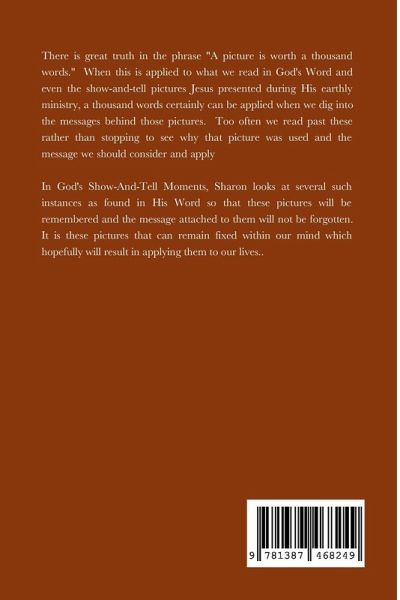 A picture is worth a thousand words and this phrase becomes relevant when we stop to consider the pictures we find in God's Word. Rather than passing over them and assuming we understand, it proves beneficial and enlightening when we stop and consider why a particular picture was used to bring a message we need to consider. God's Show-and-Tell Moments help us to do just that as we pick a few from the Word to "pick the layers apart" and then consider all the messages they contain for us not to forget but to remember and apply.
