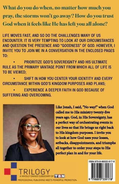 What do you do when, no matter how much you pray, the storms won't go away? How do you trust God when it feels like He has left you all alone? LIFE MOVES FAST, AND SO DO THE CHALLENGES MANY OF US ENCOUNTER. IT IS VERY TEMPTING TO LOOK AT OUR CIRCUMSTANCES AND QUESTION THE PRESENCE AND "GOODNESS" OF GOD. HOWEVER, I INVITE YOU TO JOIN ME IN A CONVERSATION IN THE ENCLOSED PAGES TO: ¿PRIORITIZE GOD'S SOVEREIGNTY AND HIS ULTIMATE RULE AS THE PRIMARY VANTAGE POINT FROM WHICH ALL OF LIFE IS TO BE VIEWED; ¿SHIFT IN HOW YOU CENTER YOUR IDENTITY AND EVERY CIRCUMSTANCE WITHIN GOD'S KINGDOM PURPOSES AND PLANS; ¿EXPERIENCE A DEEPER FAITH IN GOD BECAUSE OF SUFFERING AND OVERCOMING.
