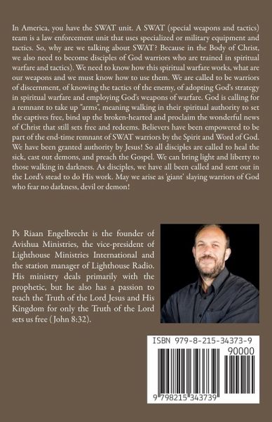 In America, you have the SWAT unit. A SWAT (special weapons and tactics) team is a law enforcement unit that uses specialized or military equipment and tactics. So, why are we talking about SWAT? Because in the Body of Christ, we also need to become disciples of God warriors who are trained in spiritual warfare and tactics). We need to know how this spiritual warfare works, what are our weapons and we must know how to use them. We are called to be warriors of discernment, of knowing the tactics of the enemy, of adopting God's strategy in spiritual warfare and employing God's weapons of warfare. God is calling for a remnant to take up "arms", meaning walking in their spiritual authority to set the captives free, bind up the broken-hearted and proclaim the wonderful news of Christ that still sets free and redeems. Believers have been empowered to be part of the end-time remnant of SWAT warriors by the Spirit and Word of God. We have been granted authority by Jesus! So all disciples are called to heal the sick, cast out demons, and preach the Gospel. We can bring light and liberty to those walking in darkness. As disciples, we have all been called and sent out in the Lord's stead to do His work.