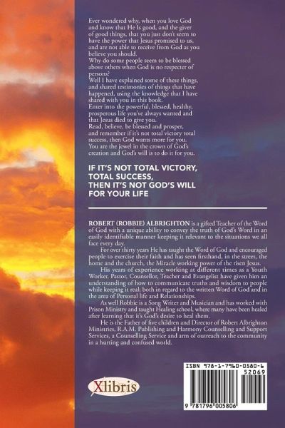 Ever wondered why, when you love God and know that He Is good, and the giver of good things, that you just don't seem to have the power that Jesus promised to us, and are not able to receive from God as you believe you should. Why do some people seem to be blessed above others when God is no respecter of persons? Well I have explained some of these things, and shared testimonies of things that have happened, using the knowledge that I have shared with you in this book. Enter into the powerful, blessed, healthy, prosperous life you've always wanted and that Jesus died to give you. Read, believe, be blessed and prosper, and remember if it's not total victory total success, then God wants more for you. You are the jewel in the crown of God's creation and God's will is to do it for you. If It's not total VIctory, total success, then It's not God's WIll for your lIfe