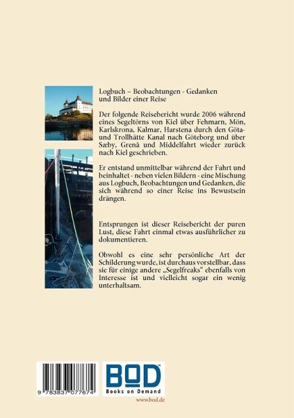 Göta Törn - Ein SegelsommerLogbuch - Beobachtungen - Gedanken und Bilder einer ReiseDer folgende Reisebericht wurde 2006 während eines Segeltörns von Kiel über Fehmarn, Mön, Karlskrona, Kalmar, Harstena, durch den Göta- und Trollhättan Kanal nach Göteborg und über Sæby, Grenå und Middelfahrt wieder zurück nach Kiel geschrieben.Er entstand unmittelbar während der Fahrt und beinhaltet eine Mischung aus Logbuchauszügen, Beobachtungen und Gedanken, die sich während so einer Reise ins Bewustsein drängen.Entsprungen ist dieser Reisebericht, aus der puren Lust, diese Fahrt einmal etwas ausführlicher zu dokumentieren. Obwohl es eine sehr persönliche Schilderung der Reise wurde, so ist durchaus vorstellbar, dass sie für einige andere "Segelfreaks" ebenfalls von Interesse und sogar ein wenig unterhaltsam ist.