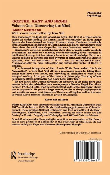Introduction to the Transaction Edition Prologue 1. What I am concerned with is self-knowledge meaning knowledge both of our own minds and of the human mind in general. The meaning of mind. 2. Why is it that we have made so little progress in the discovery of the mind? Goethe and Kant. 3. Three aims I. Goethe and the Discovery of the Mind II. Influences: Herder Lessing Schiller Fichte Schopenhauer III. Kant: The Structure of the Mind IV. Kant: Autonomy Style and Certainty V. Hegel's Three Conceptions of Phenomenology Bibliography Acknowledgments