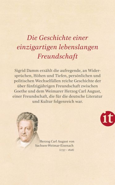 Sigrid Damm erzählt die aufregende, an Widersprüchen, Höhen und Tiefen, persönlichen und politischen Wechselfällen reiche Geschichte der über fünfzigjährigen Freundschaft zwischen Goethe und dem Weimarer Herzog Carl August.