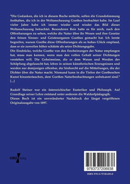 "Die Gedanken, die ich in diesem Buche mitteile, sollen die Grundstimmung festhalten, die ich in der Weltanschauung Goethes beobachtet habe. Im Lauf vieler Jahre habe ich immer wieder und wieder das Bild dieser Weltanschauung betrachtet. Besonderen Reiz hatte es für mich, nach den Offenbarungen zu sehen, welche die Natur über ihr Wesen und ihre Gesetze den feinen Sinnes- und Geistesorganen Goethes gemacht hat. Ich lernte begreifen, warum Goethe diese Offenbarungen als so hohes Glück empfand, dass er sie zuweilen höher schätzte als seine Dichtungsgabe.