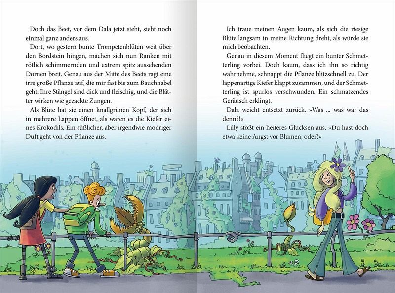 Und tatsächlich steckt hinter Lilly mehr als ein nettes Lächeln: Sie ist eine mächtige Pflanzengöttin, die sich als Schülerin tarnt! Als Mops Ravioli sich plötzlich in eine Topfpflanze verwandelt und die Yucca-Palme in Finns Zimmer zum Leben erwacht, ist für die Freunde klar - sie müssen Lillys finsteren Plan durchkreuzen, bevor es zu spät ist!