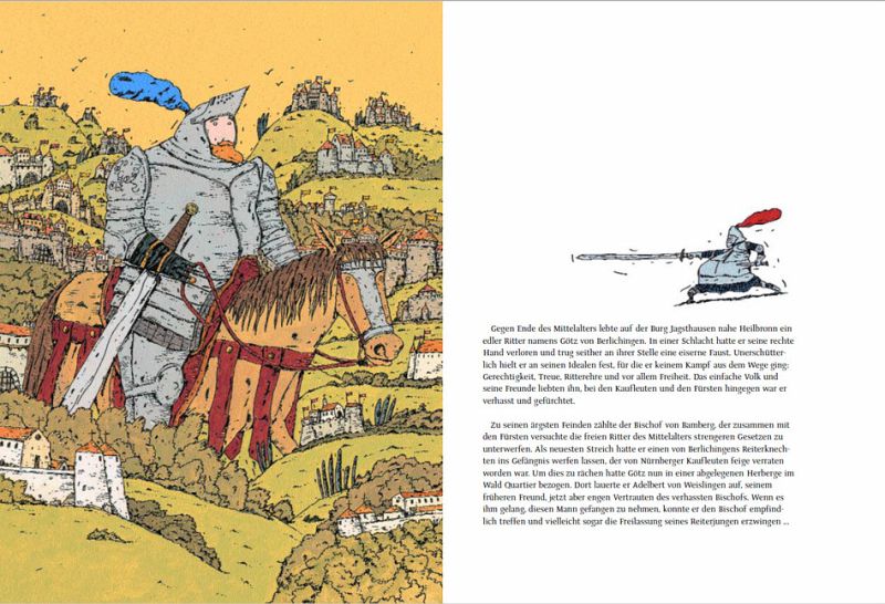 Götz von Berlichingen, der Ritter mit der eisernen Hand, ist durch Goethes Drama weltberühmt geworden und seine Respektlosigkeit gegenüber der Obrigkeit längst sprichwörtlich. Neuerdings aber schwingt der eiserne Ritter die Fackel der Freiheit nicht mehr nur auf der Bühne, sondern entführt schon kleine Leseratten ab 7 Jahre in die faszinierende Welt des Mittelalters. Goethes Klassiker liest sich in der Neufassung von Barbara Kindermann wie eine spannende Abenteuergeschichte - über Freundschaft, Verrat und Intrigen, korrupte Kaufleute, feige Fürsten, tollkühne Ritter und schöne Burgfräulein. Bernd Mölck-Tassel hat dazu phantastisch-schräge Bilder mit vielen witzigen Details geschaffen.
