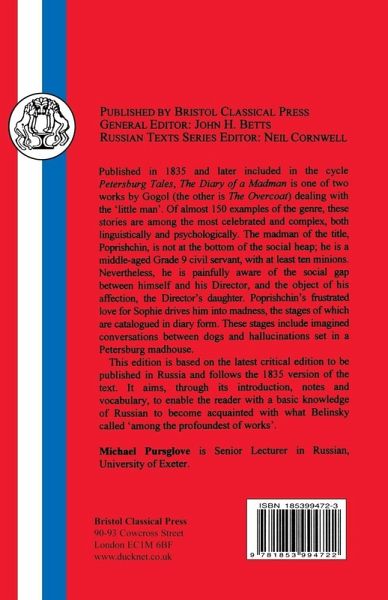 Originally published in 1835, this is one of two works by Gogol dealing with the "little man" (the other is "The Overcoat"). Of over 150 examples of this genre, these two stories are often considered the most complex, both linguistically and psychologically. Poprischin is not at the bottom of the social ladder; he is a middle-aged, grade nine civil servant, with at least ten minions under him. Nevertheless he is painfully aware of the social gap between himself and his Director and, even more so, between himself and Sophie, the Director's daughter. Poprischin's frustrated love for Sophie drives him into madness, the stages of which are catalogued in diary form. These stages include imagined conversations between dogs and hallucinations set in a Spanish madhouse. This edition is based on the latest critical edition of the text to be published in Russia and follows the 1835 version of the text.