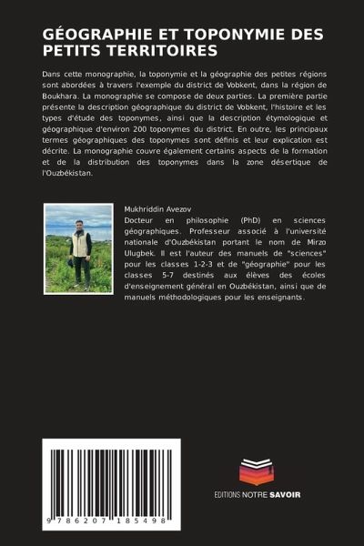 Dans cette monographie, la toponymie et la géographie des petites régions sont abordées à travers l'exemple du district de Vobkent, dans la région de Boukhara. La monographie se compose de deux parties. La première partie présente la description géographique du district de Vobkent, l'histoire et les types d'étude des toponymes, ainsi que la description étymologique et géographique d'environ 200 toponymes du district. En outre, les principaux termes géographiques des toponymes sont définis et leur explication est décrite. La monographie couvre également certains aspects de la formation et de la distribution des toponymes dans la zone désertique de l'Ouzbékistan.