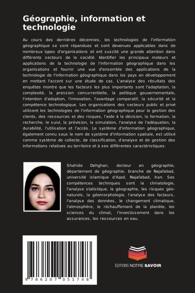Au cours des dernières décennies, les technologies de l'information géographique se sont répandues et sont devenues applicables dans de nombreux types d'organisations et ont suscité une grande attention dans différents secteurs de la société. Identifier les principaux moteurs et applications de la technologie de l'information géographique dans les organisations et fournir une vue d'ensemble des applications de la technologie de l'information géographique dans les pays en développement en mettant l'accent sur une étude de cas. L'analyse des résultats des enquêtes montre que les facteurs les plus importants sont l'adaptation, la complexité, la pression concurrentielle, la politique gouvernementale, l'intention d'adoption, l'innovation, l'avantage comparatif, la sécurité et la compétence technologique. Les organisations des secteurs public et privé utilisent les technologies de l'information géographique pour la gestion des clients, des ressources et des risques, l'aide à la décision, la formation, la recherche, le suivi, la prévision, la simulation, l'analyse de l'adéquation, la durabilité, l'utilisation et l'accès. Le système d'information géographique, également connu sous le nom de système d'information spatiale, est utilisé comme système de collecte, de classification, d'analyse et de gestion des informations relatives au territoire et à ses différentes caractéristiques.